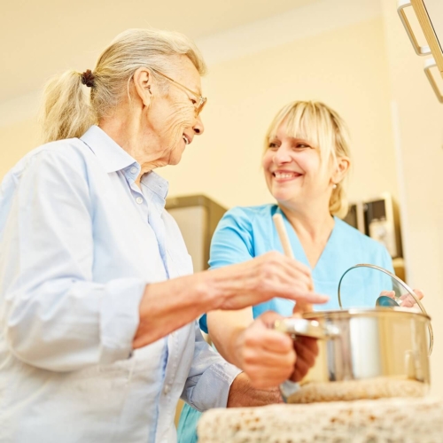 Darauf aufbauend erwerben Sie in Ihrer Ausbildung weitere Kenntnisse rund um die medizinischen, kommunikativen und rechtlichen Aspekte der häuslichen Pflege und erhalten dafür zusätzlich das Zertifikat als „Fachkraft in der häuslichen Pflege“.